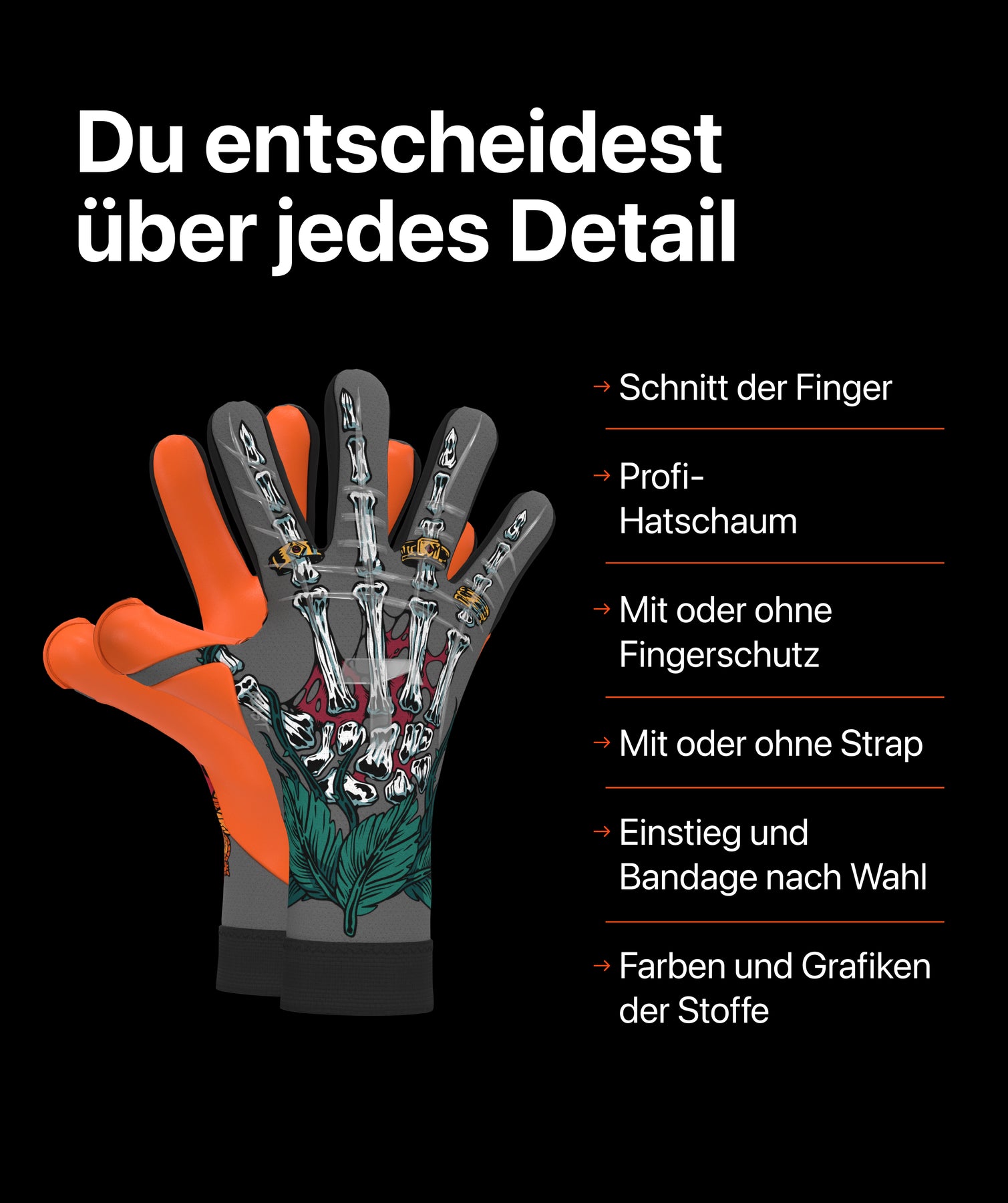 - Unterschiedliche Aufdrucke auf dem rechten und dem linken Handschuh sind leider nicht möglich.