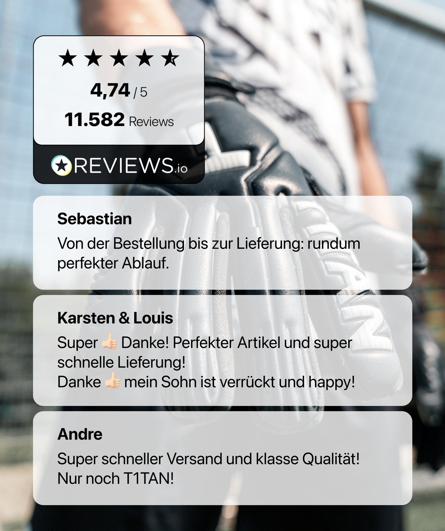 • Profis verwenden unsere Torwarthandschuhe in der Regel nur einige Wochen, da die Belastung auf diesem Niveau extrem hoch ist. Bei T1TAN erhältst du die gleiche Qualität wie die Profis.