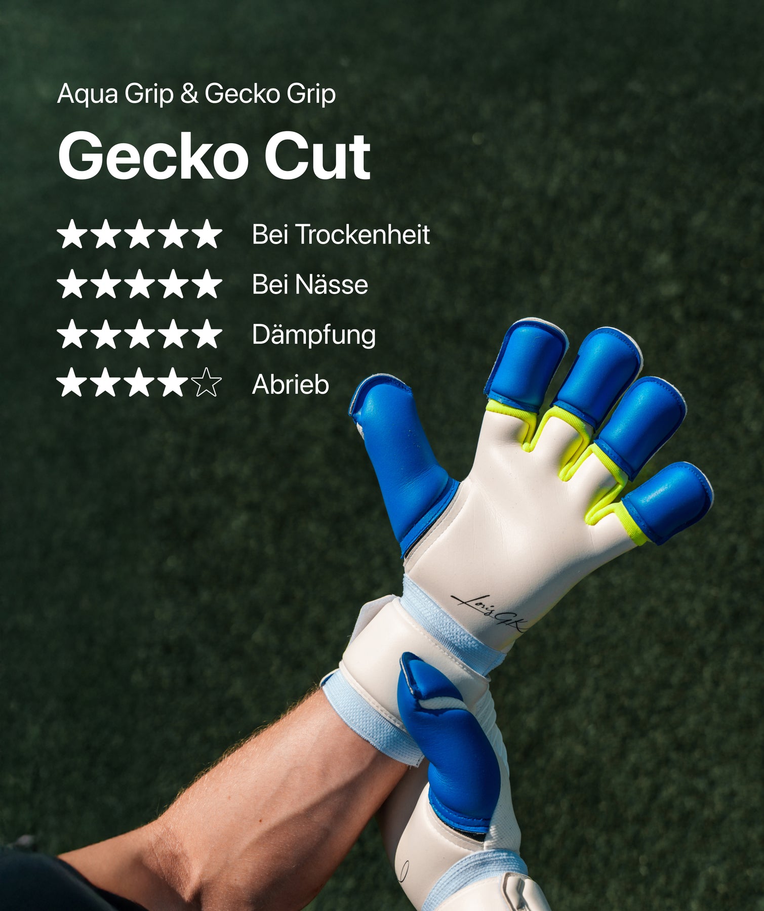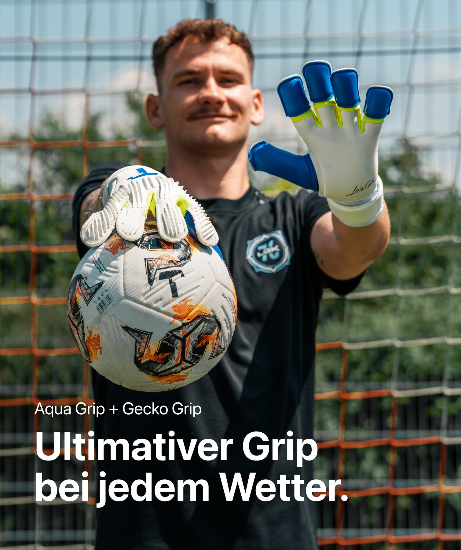 Ultimativer Grip bei jedem Wetter dank der Kombination aus Aqua Grip an den Fingerspitzen und Gecko Grip an den Handflächen.